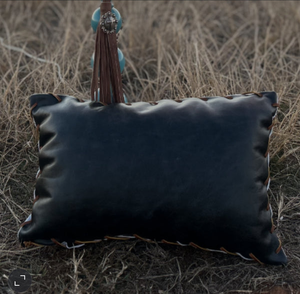 Leather Back, Leather Latigo Lacing, Angus Cattle Herd Pencil Drawing Pillow